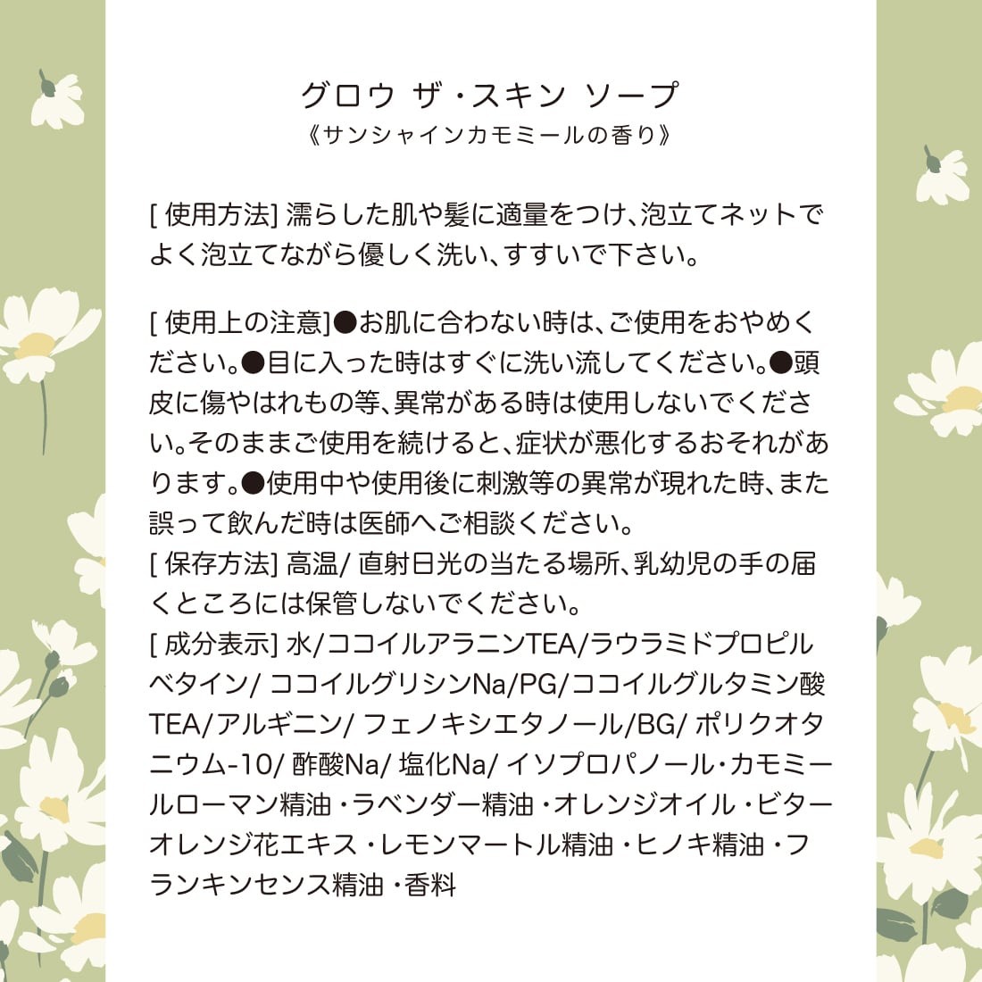 グロウ ザ・スキンソープは髪にもお使いいただけます。